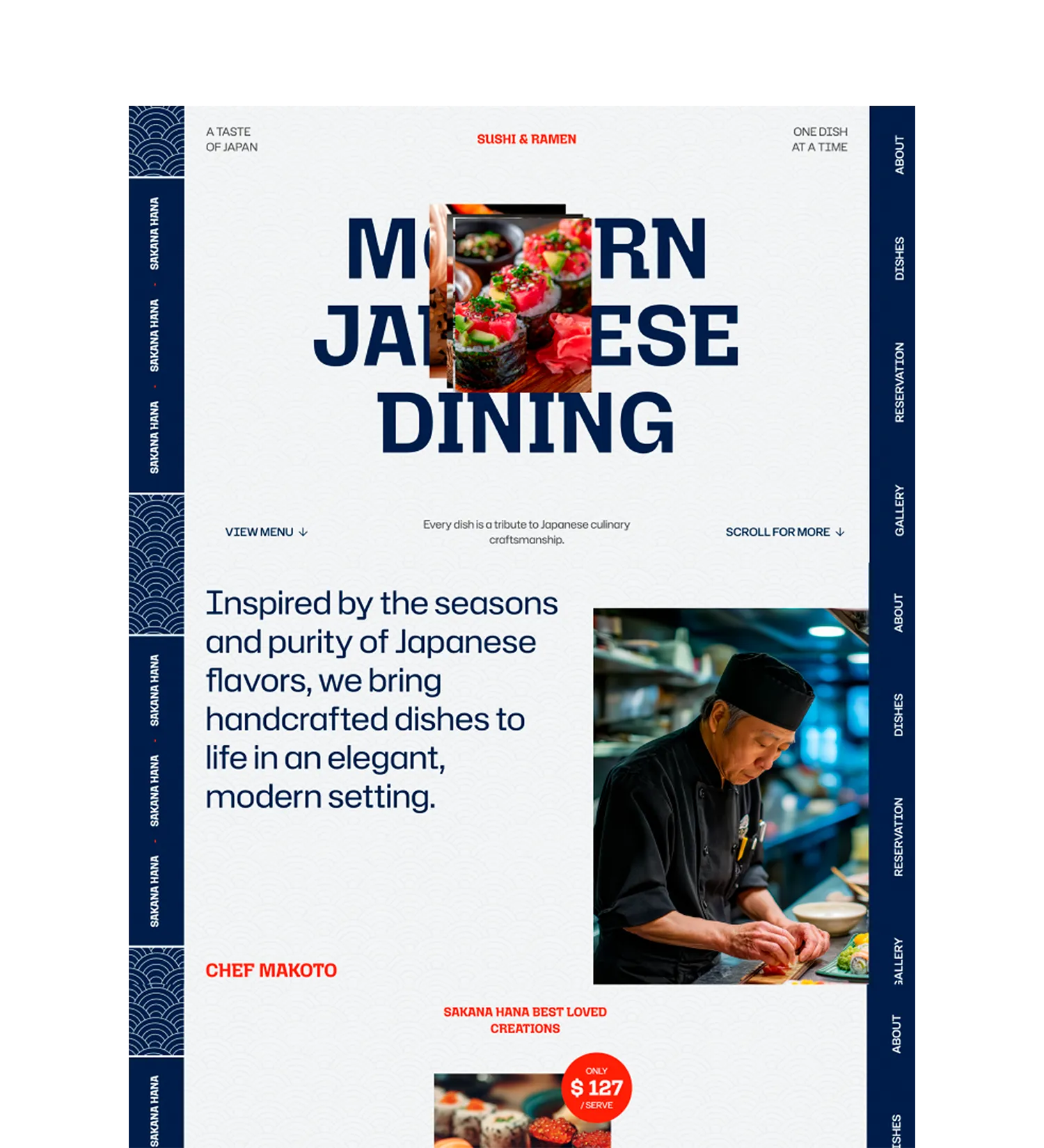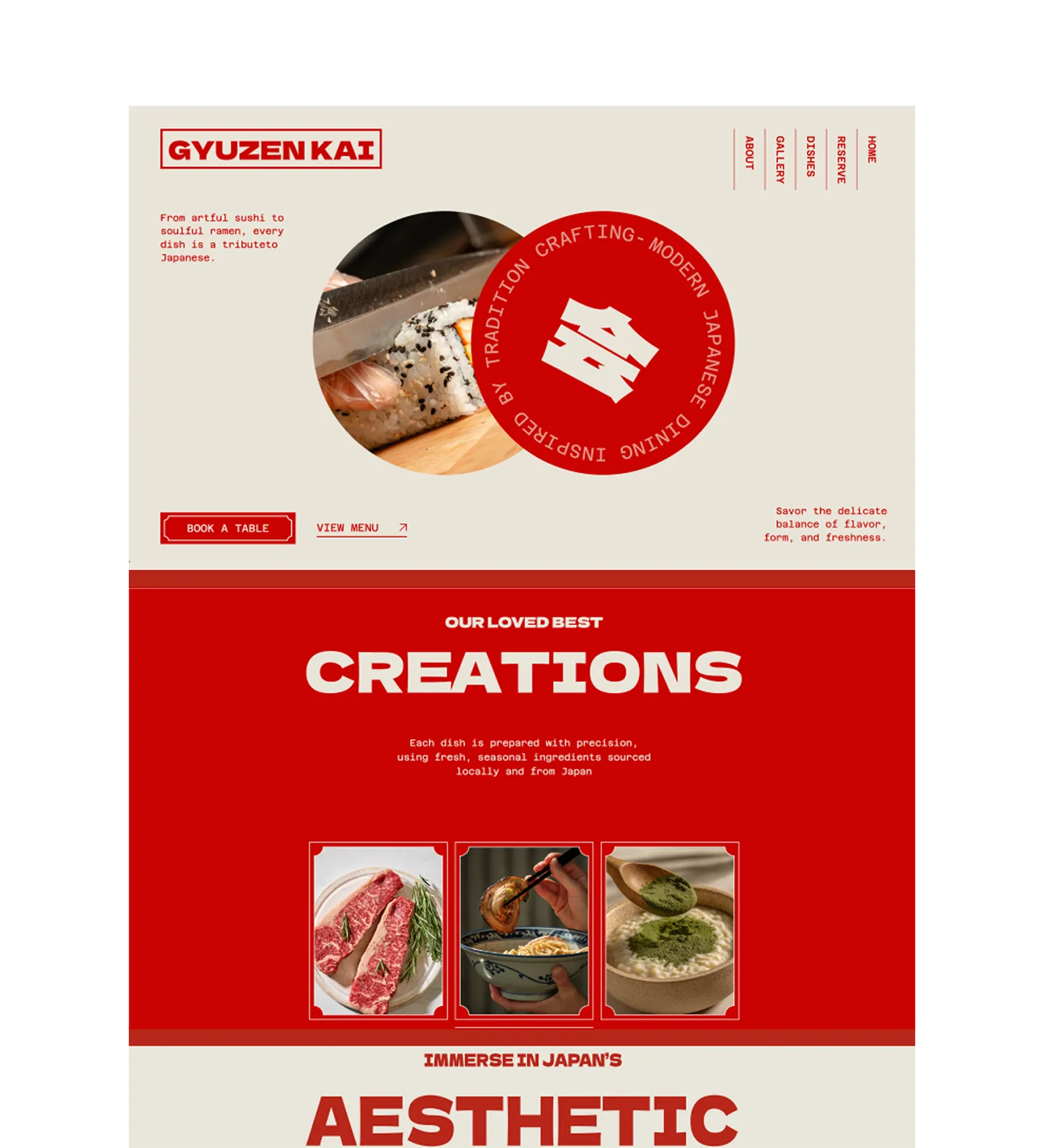 Gyuzen is a sleek Webflow template crafted for restaurants, cafes, and dining spots.
