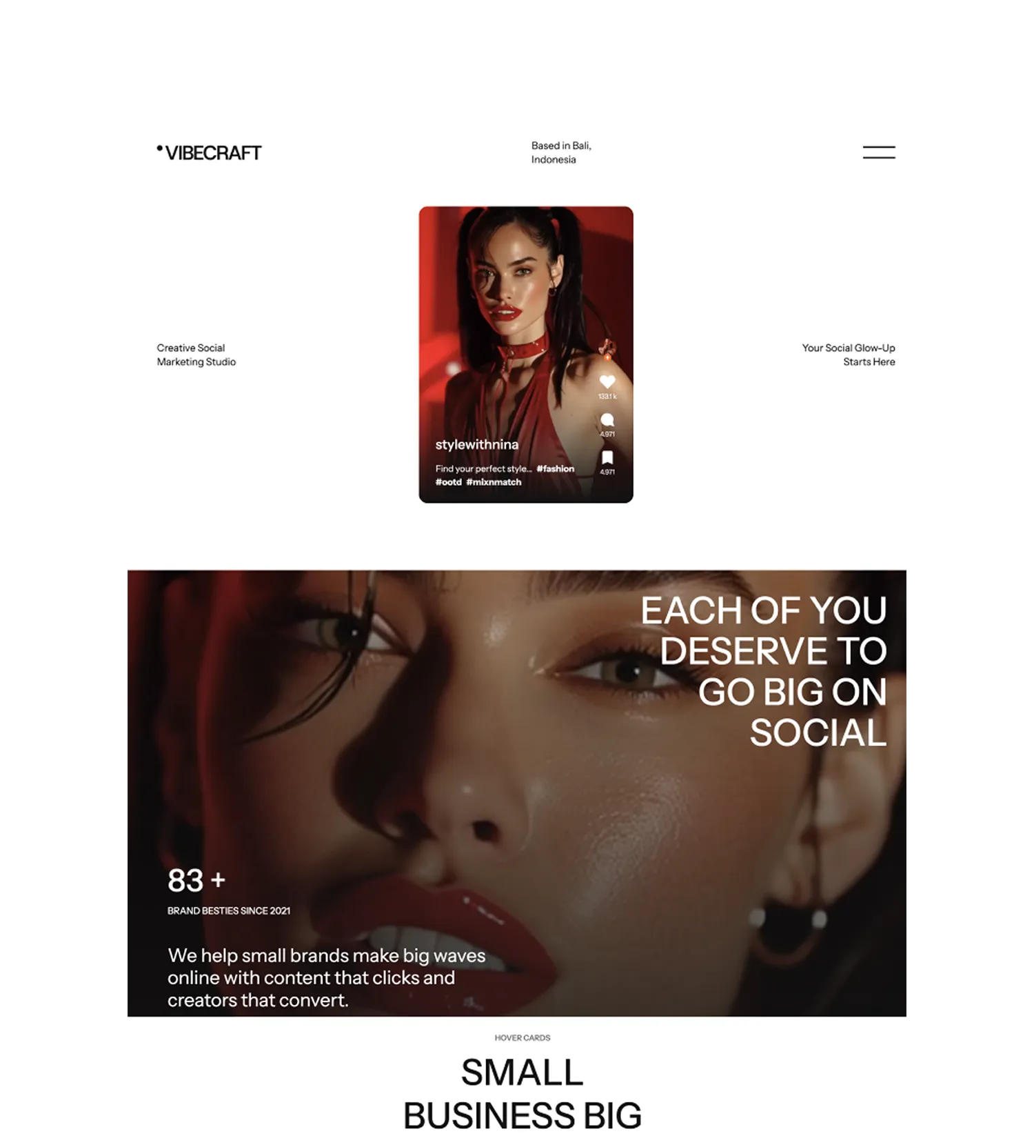 Vibecraft is a modern Webflow template designed for creators and influencers to showcase their personal brand.