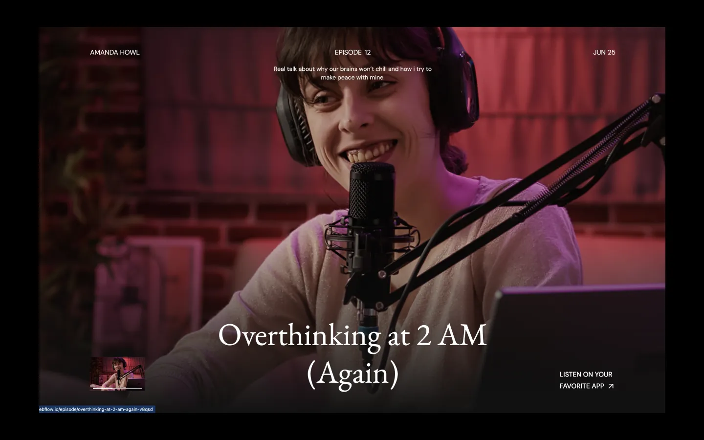 With an easy-to-browse episode library, listeners can quickly find the stories they love. Each episode page is designed to highlight details, guests, and notes, giving your audience a smooth and enjoyable experience from start to finish.