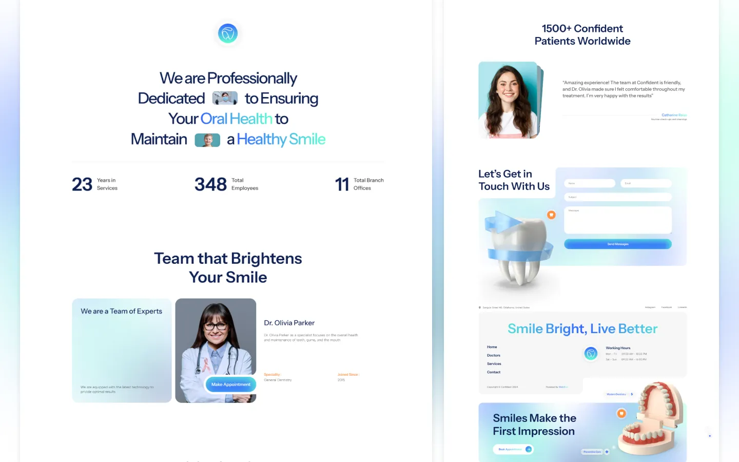 Elevate your dental practice’s online presence with the Confident template—a modern, responsive Webflow design crafted specifically for dental professionals. This template combines aesthetic elegance with functional excellence to help you engage patients and showcase your expertise. Here are some key description items:
