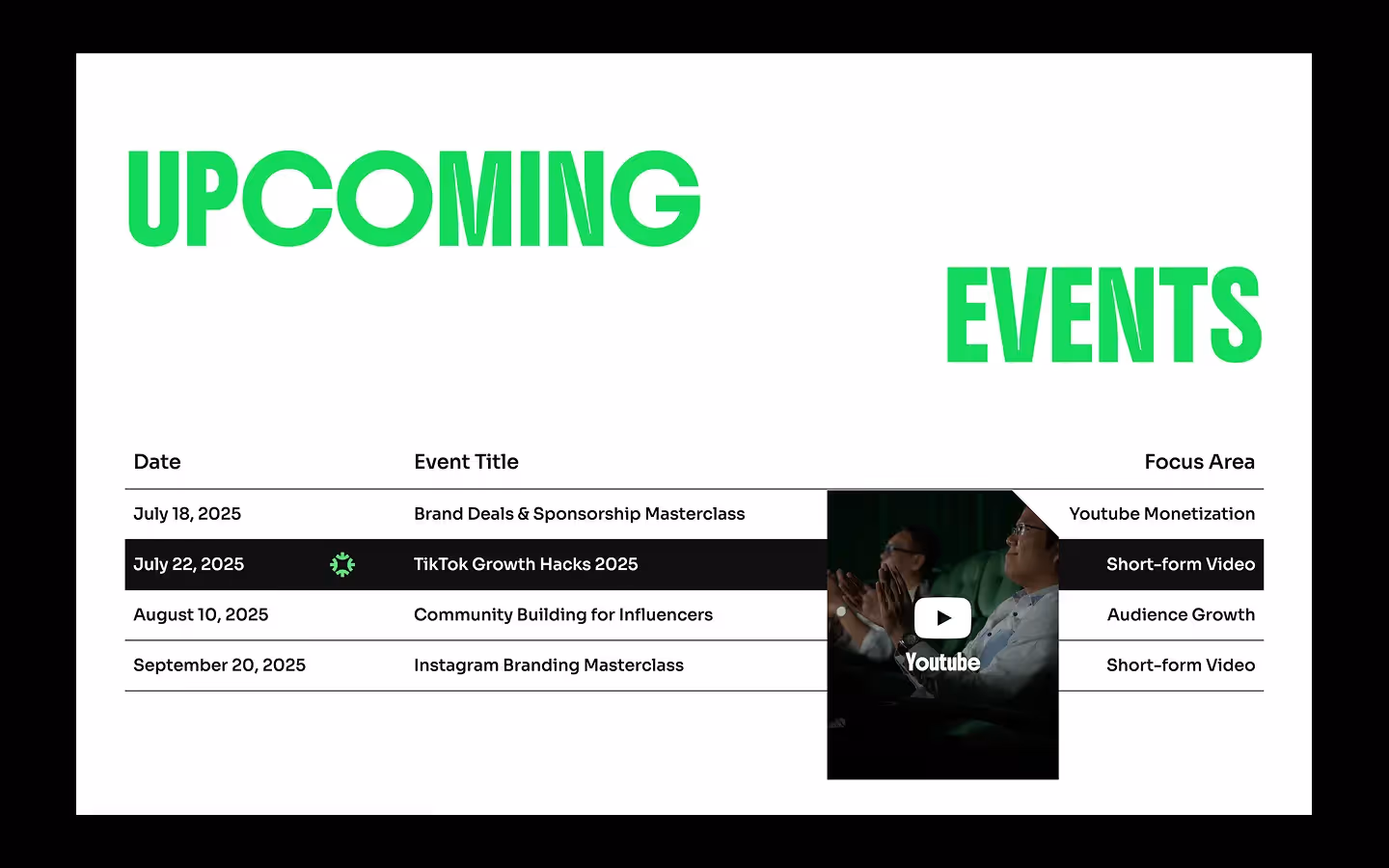 Whether you’re organizing a tech summit, creative workshop, or startup pitch day, Creator Collective equips you with all the tools to promote, inform, and drive excitement for your event.