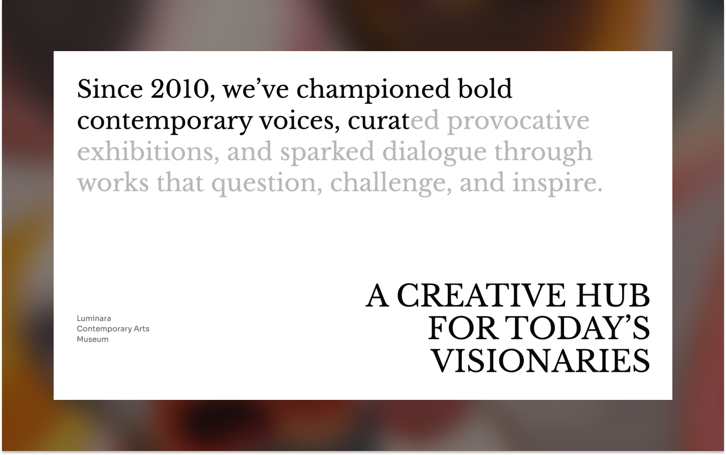 Luminaria is a modern museum Webflow template designed to spotlight art, culture, and history. With immersive layouts, elegant typography, and smooth interactions, it offers a refined digital space for exhibitions and storytelling.
